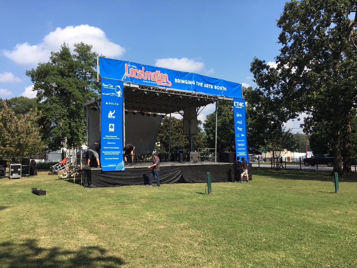 The SL100 mobile stage does very well with banners. This was an event south of Atlanta Georgia in Hapevillle GA. Thanks to the guys at Show Biz for callia us and thanks to Camero for setting it.