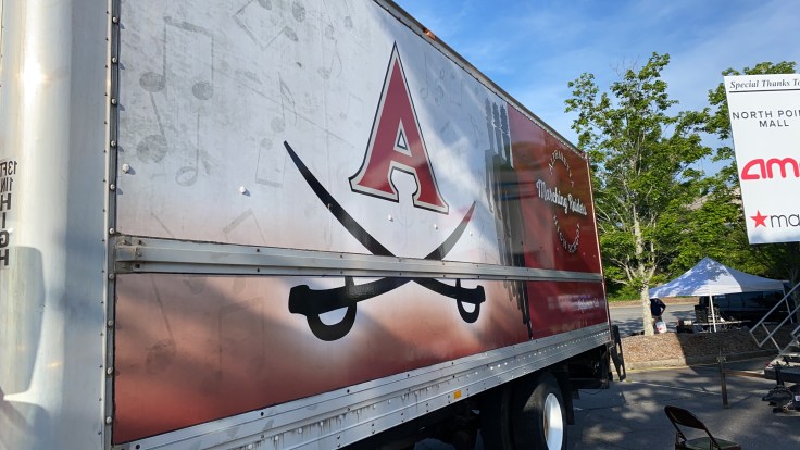 This was Alpharetta High Schools Drive in graduation. It was a huge success. We provided the SL100 mobile stage and some Appogee speakers.